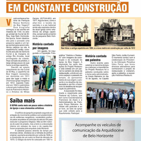 A Igreja Nossa Senhora da Boa Viagem, em Belo Horizonte, foi minha cliente durante três meses deste ano. Durante esse tempo, produzi material jornalístico de divulgação em redes sociais, releases, peças publicitárias, cartazes e fiz duas edições do jornal Boa Viagem Notícias.